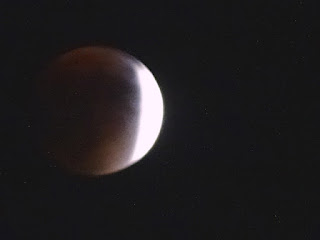 This is the view of the beginning of the “Blood Moon” super lunar eclipse on Sunday over our back fence.
