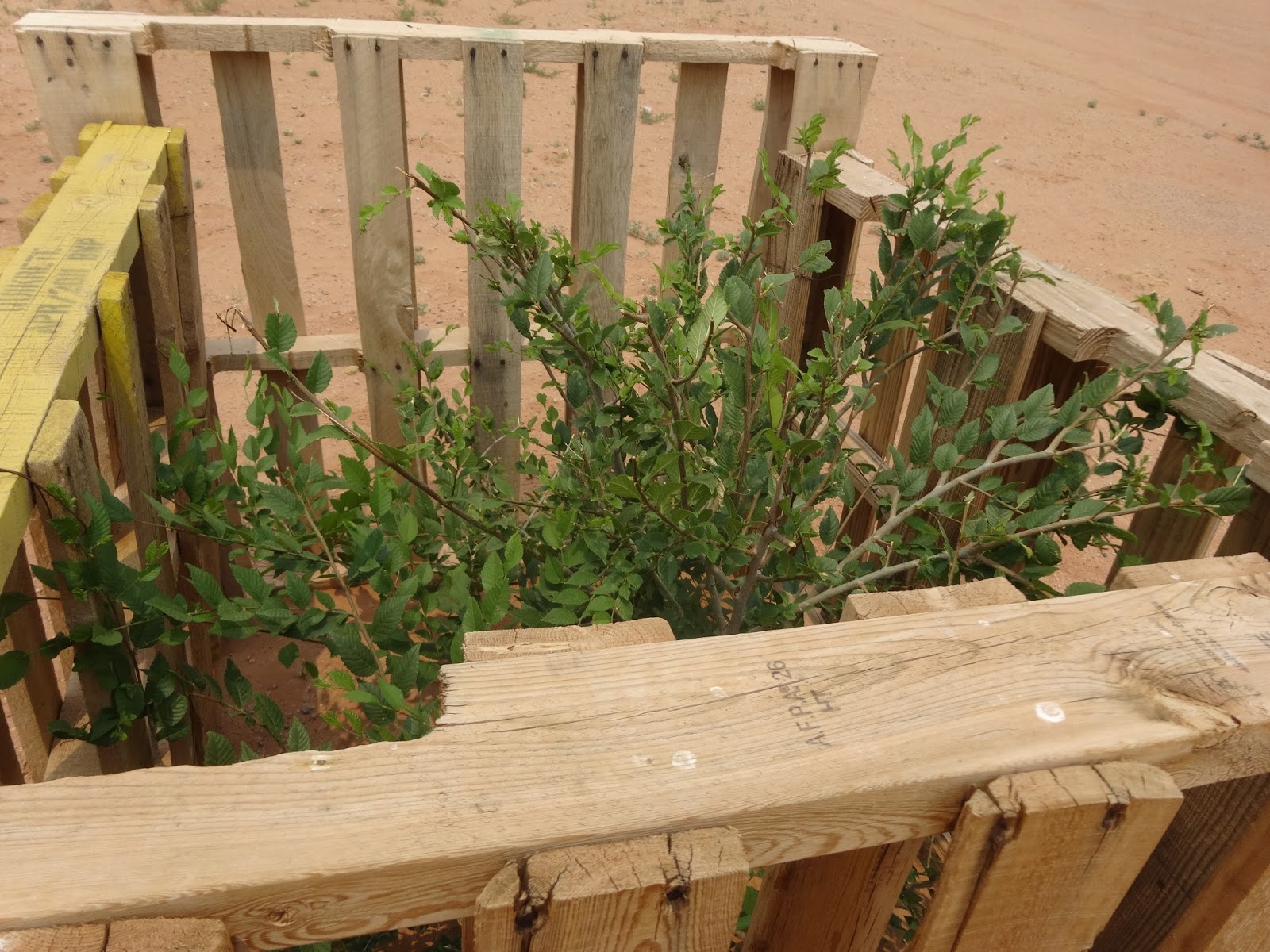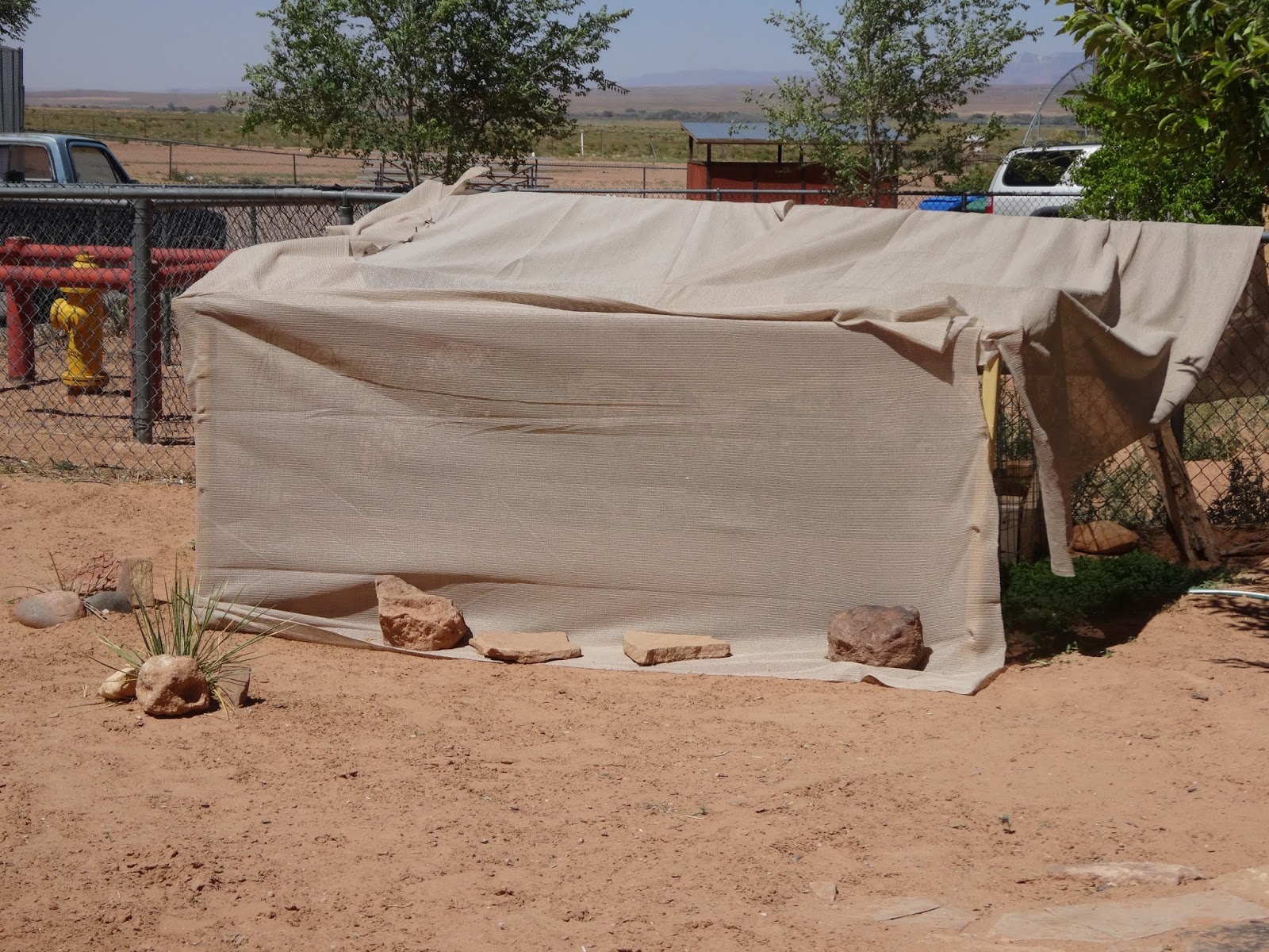 Have I mentioned before how difficult it is to battle the elements in Chinle and to keep things alive? The heat, scorching sun and wind and dust attack the environment with ferocity. In an earlier blog I have whined about this and my own garden (see photo above) but I decided to see what others are doing to help keep green things alive and to protect their own environments.