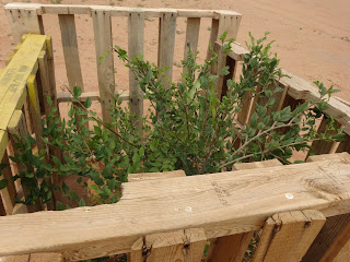 Note the sign: Experimental Sand Fence. Made out of packing pallets. For some reason the are all over the place here, the pallets not the fences…yet. Wonder if works.
